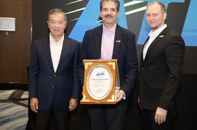 The awards were presented to Shaikh Abdulaziz bin Mubarak Al Khalifa, President of the BTF, by Bulat Utemuratov, Vice President of the ITF, and Yuriy Polsky, President of the ATF, during a special ceremony held on the sidelines of the ATF Annual General Meeting in Kazakhstan.